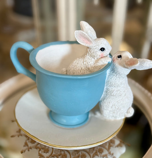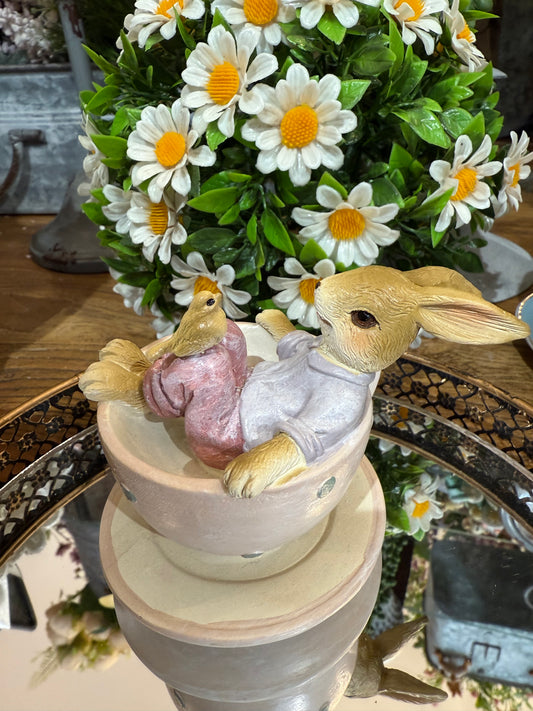 Lapin à l’Oiseau en Tasse Pastel